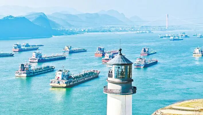 长江宜昌段清澈的江面千帆竞发,整治后的两岸景观如画。(湖北日报全媒记者 刘曙松 通讯员 谭雪姣 摄)